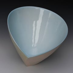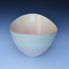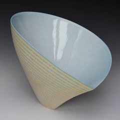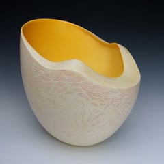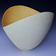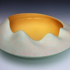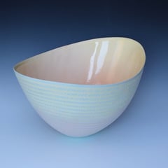 I use white porcelain for my large earthenware pieces which are hand built by coiling, decorated with painted and burnished slips and fired to an earthenware temperature.